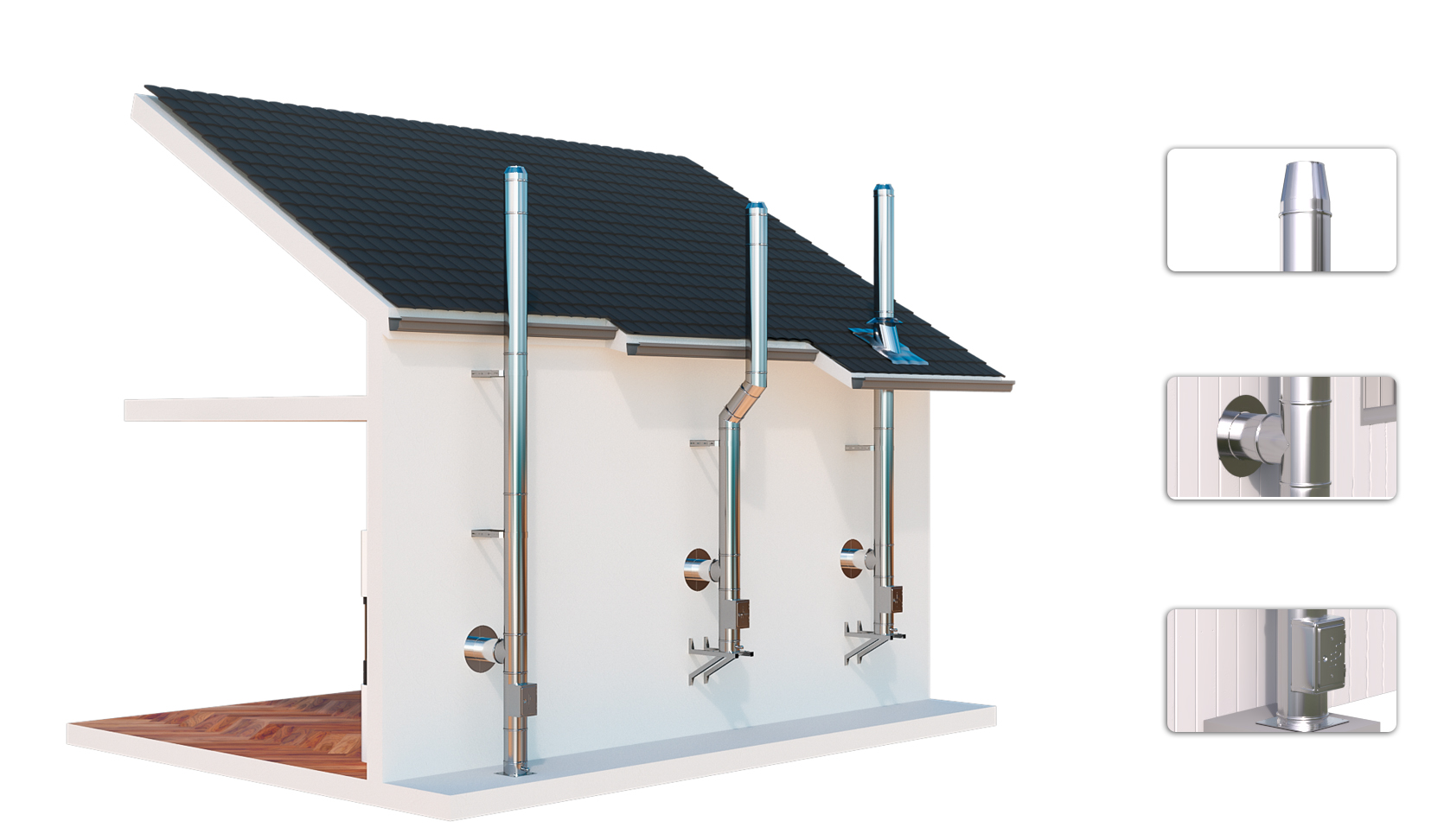 Vi er et 100% datterselskab af producenten af dobbeltvæggede skorstene lavet af høj kvalitets rustfrit stål.